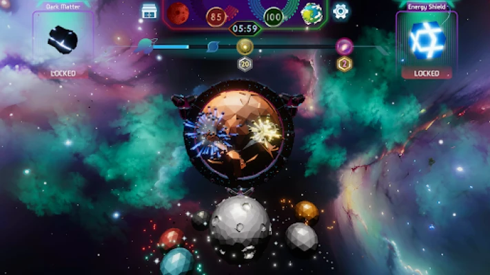 Au début, votre planète Alpha n'est qu'un germe de destruction, manquant des lunes redoutables nécessaires pour anéantir les entités cosmiques. En accumulant des particules d'énergie, vous la doterez d'un arsenal lunaire grandissant, conférant à Alpha: Planet Smasher une force inouïe. Chaque palier d'évolution décuple la puissance de votre planète et de ses lunes, vous permettant de lancer des offensives de plus en plus stratégiques et dévastatrices. Chaque fragment stellaire récolté nourrit cette ascension, propulsant continuellement Alpha: Planet Smasher vers une dominance spatiale sans précédent.