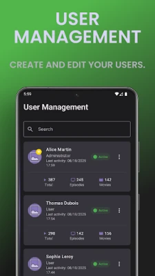 Au-delà de la surveillance, EmbyWatch vous confère un contrôle total. Gérez aisément plusieurs serveurs Emby via une authentification sécurisée, basculant entre eux sans effort. L'administration des utilisateurs n'a jamais été aussi simple : consultez les profils détaillés, les dernières activités, les permissions, et même envoyez des messages directs aux utilisateurs en pleine lecture. Maîtrisez les accès avec une visibilité sur les plans et gérez les requêtes de médias (films, séries) émises par vos utilisateurs, de la soumission à la validation administrative, grâce à l'intégration transparente de Jellyseerr/Seerr. Vous pouvez également superviser et gérer les appareils connectés, ainsi que démarrer ou arrêter les tâches système planifiées, ou même redémarrer et éteindre vos serveurs à distance.