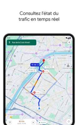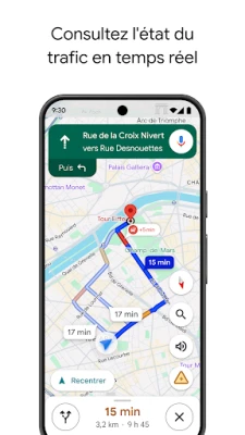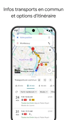 Avec Google Maps, transformez chaque déplacement en une expérience fluide et optimisée. Que vous preniez le volant, le bus ou que vous enfourchiez un vélo, notre application vous guide avec intelligence. Profitez d'itinéraires détaillés en temps réel, agrémentés d'un guidage vocal clair et d'instructions visuelles intuitives, pour atteindre votre destination sans effort. Gagnez un temps précieux grâce à des recalculs d'itinéraire automatiques qui s'adaptent instantanément aux conditions de circulation, aux incidents et aux fermetures de routes, vous assurant ainsi toujours le chemin le plus rapide. Pour les transports en commun, accédez aux horaires en direct des bus et trains, ou localisez facilement un vélo ou une trottinette à louer pour vos trajets courts.