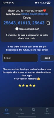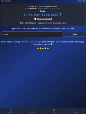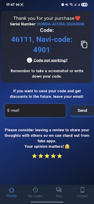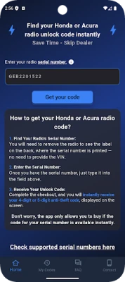 Avec Honda Radio Code Acura Fast, récupérez facilement le code de votre autoradio Honda ou Acura. Entrez le numéro de série de votre appareil pour obtenir instantanément le code. Profitez d'un support client 24h/24, 7j/7 et d'une garantie de remboursement intégral si le code ne fonctionne pas.