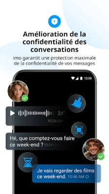 Votre vie privée est une priorité absolue avec imo. Des fonctionnalités avancées telles que Time Machine, les messages éphémères, le Privacy Chat, le Screen Shield et un chiffrement de bout en bout garantissent une protection maximale de vos échanges. Vous avez le contrôle total : supprimez des messages, définissez des délais d'expiration et empêchez les captures d'écran, les copies, les partages et les téléchargements non autorisés de vos conversations privées. Poursuivez l'aventure avec le VoiceClub d'imo, un espace unique pour vous connecter avec votre famille et vos amis. Créez ou rejoignez des salles de discussion pour des échanges thématiques, organisez des événements spéciaux, des concours de talents ou simplement partagez des moments mémorables en communauté.
