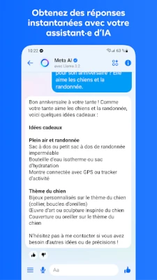 Explorez une nouvelle dimension d'interaction grâce à Meta AI, votre assistant intelligent intégré. Obtenez des réponses instantanées à vos interrogations, des conseils personnalisés ou un soutien pour vos projets, le tout à portée de message. Meta AI dépasse la simple assistance en vous permettant de libérer votre créativité, qu'il s'agisse de générer, modifier ou animer des images pour enrichir vos conversations. Partagez vos souvenirs les plus précieux en haute définition, capturant chaque détail avec une clarté exceptionnelle. Créez des albums partagés de photos et vidéos pour immortaliser vos vacances ou les événements familiaux majeurs, organisant et revivant ces moments spéciaux au sein de vos groupes. Complétez le tableau en partageant des instants éphémères de votre quotidien via les Stories et des messages rapides avec les Notes, disparaissant après 24 heures.