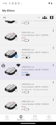 Gardez un œil vigilant sur l'état de votre Miimo et l'historique de ses activités en un coup d'œil. Recevez des notifications push instantanées pour toute anomalie, besoin d'entretien ou alerte de sécurité. La localisation GPS intégrée et le système de géorepérage (Geofence) avancé garantissent la sécurité de votre appareil, tandis que la fonction de zones d'exclusion temporaires vous permet de protéger des espaces spécifiques de votre jardin. Pour les gestionnaires de grands domaines ou les professionnels, l'application facilite la supervision et la gestion efficace d'un parc entier de Miimo, y compris les configurations multi-tondeuses.