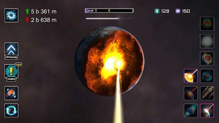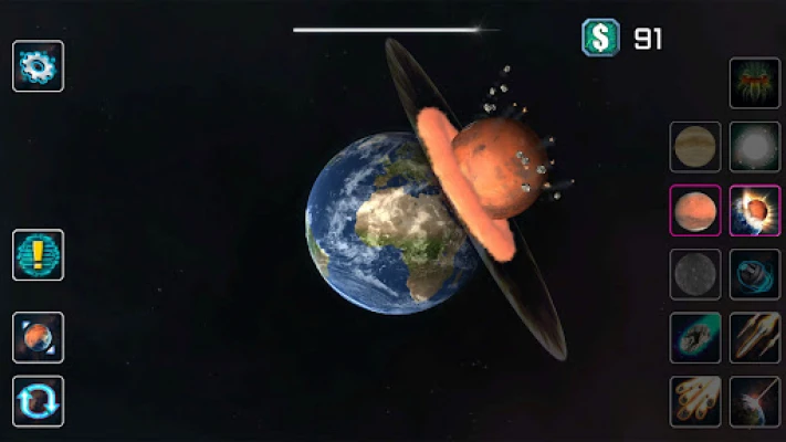 L'arsenal à votre disposition est d'une variété sidérante. Fixez des bombes à retardement sur la surface, puis observez l'onde de choc dévastatrice qui s'ensuit. Déchaînez un déluge de roquettes et de missiles guidés, traçant des sillons lumineux avant des impacts cataclysmiques. Maîtrisez des lasers surpuissants, capables de percer la croûte planétaire jusqu'à son noyau incandescent. Mais la véritable grandeur réside dans les chocs cosmiques : lancez une planète entière comme Mars ou Vénus dans une collision frontale avec un autre corps céleste, assistant en direct à des événements d'une échelle inimaginable, retranscrits avec des effets visuels et sonores d'un réalisme saisissant. Après chaque cataclysme, admirez la formation d'une ceinture d'astéroïdes fidèle aux lois de la physique, témoin silencieux de votre œuvre.