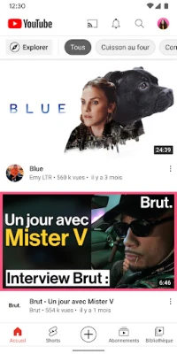 Immergez-vous dans un univers de divertissement sans fin avec YouTube. Dès l'écran d'accueil, découvrez un flux de contenu finement personnalisé, conçu pour résonner avec vos intérêts uniques. Ne manquez jamais une mise à jour de vos créateurs préférés : l'onglet "Abonnements" vous tient informé des dernières nouveautés. Votre "Bibliothèque" personnelle est le sanctuaire de vos découvertes, où vous pouvez revisiter vos vidéos regardées, vos "J'aime" mémorables et vos trésors sauvegardés pour une lecture ultérieure, assurant que vos moments favoris soient toujours à portée de main.
